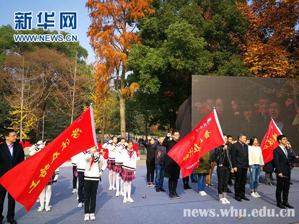新华网武汉12月2日电(记者俞俭 通讯员吴江龙)“我宣誓,我要坚守信仰,明辨是非,与法治同行……”武汉大学2017年“国家宪法日”活动2日举行,附小、附中法治宣传队和大学生普法社的普法代表宣誓,法学家、校党委常委、副校长周叶中教授等为他们授予“普法在行动”队旗。