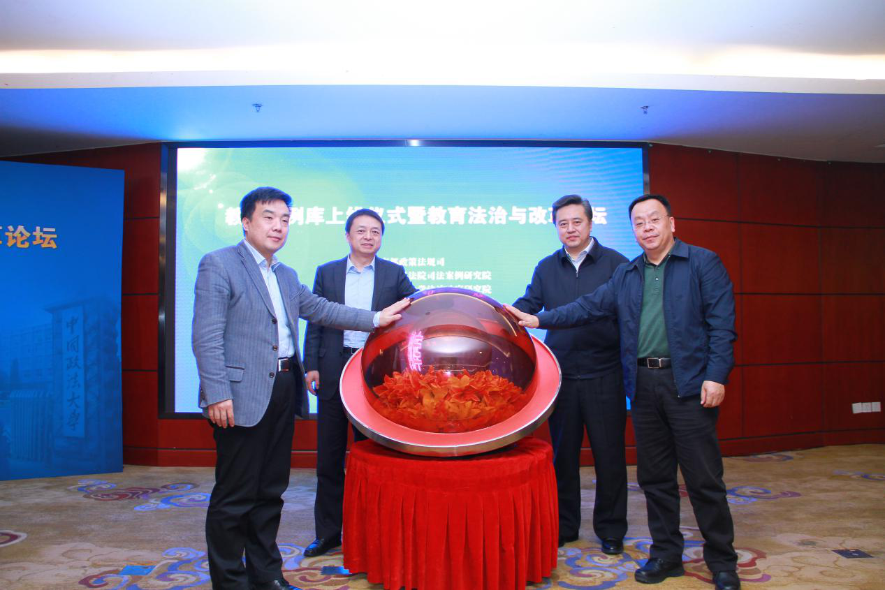 12月6日下午,教育案例库上线仪式暨教育法治与改革论坛在北京召开,此次会议由教育部政策法规司、最高人民法院司法案例研究院、中国政法大学法治政府研究院共同主办。来自最高人民法院司法案例研究院、教育部政策法规司、北京市高级人民法院、北京市教育委员会、北京市第四中级人民法院、北京大学、中国人民大学、中国政法大学、北京外国语大学、北京理工大学、北京大学附属中学、中国人民大学附属中学、北京市东交民巷小学等实务部门、知名高校和科研院所的三十余位专家学者,以及新华社、人民网、中央人民广播电台、《法制日报》等十多家新闻媒体出席了会议。