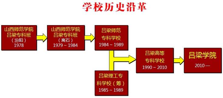 1978年,山西师范学院吕梁师专班在汾阳师范创办。山西省计委,省教育局下达招生计划150人,开设三个专业:物理、数学、英语。吕梁地区教育局委派专人负责管理。 1979年,迁到离石,由地区教师进修校代管,开设汉语言文学,数学两个专业,在校生101人,汾阳师范三个专业从1979年冬起,每年报表都由吕梁地区教师进修校汇总上报,行政拨款按单位归属拨款。 1980年,学校在东川河乱石滩上,以春苗包款方式圈住81亩地开辟新校址。制定建校方案,1981年深秋,新校址上第一批学生入学住进。 1984年,吕梁师范专科学校正式建立。6月2日,山西省人民政府(84)晋政函61号文件《关于建立临汾、吕梁师范专科学校的批复》,批准吕梁师范专科学校建校。 1984年,学校颁布校训为“高瞻远瞩,博览多思”,校歌为《我们是创新的一代》,制定了一系列文件,确立了办学指导思想,培养人才规格和改革的内容、目标、方法、步骤、措施。组织实行了十项改革。 1986年10月,吕梁师专新校址建筑面积达2.3万平方米,硬化路面9000平方米,植树1.3万棵。在校教职工235人,在校生770人。已经为社会输送毕业生881人。 1990年,建立吕梁高等专科学校。与吕梁师专合并的吕梁理工专科学校,最早筹建于1985年。山西省人民政府(85)晋政函16号文件,批准吕梁理工专科学校在校生规模为1500人,总建筑面积48600m2,占地面积153亩,总投资1500万元。筹建基本竣工后,吕梁理工专科学校于1989年8月招生,首批新生工业与民用建筑、化学工程两个专业80人入学。 1989年3月2日,山西省人民政府(89)晋政函14号文件《关于将吕梁理工专科学校改由省管》的文件指出:将正在筹建的吕梁理工专科学校改由省教委管理并与吕梁师范专科学校联合办学;联合办学后,理工科办学规模、基建投资不变,部分公共设施与师专统筹共用;两校实行统一领导;作为“吕梁师范专科学校的理工部”,在国家教委正式批准之前暂用“太原工业大学吕梁专科部”的名称。 1989年6月23日,国家教委(89)教计字092号致山西省人民政府《关于同意你省两校合并改办为“吕梁地区高等专科学校”的通知》文件批准,同意吕梁理工专科学校(筹)和吕梁师范专科学校合并改办为吕梁地区高等专科学校,由山西省人民政府领导,省教委主管,属于普通专科学校,内设理工部和师专部,办学规模为1900人,其中理工部1000人,师专部900人。 1989年8月3日,山西省教委,山西省计委,山西省财政厅,山西省人事局,山西省劳动局五个委厅局联合下发晋教计字(1989)13号文件《关于吕梁理工专科学校(筹)和吕梁高等专科学校合并改办为吕梁地区高等专科学校实施中有关问题的通知》文件指出:吕梁理工专科学校自1989年3月2日正式上划省教委直接管理;在领导班子未组建之前,由任元恩、刘辉汉、王兴富三同志先组成临时领导组,实施开展工作。至此,吕梁理工专科学校经历了短短四年的筹建,走上了一条与吕梁师范专科学校合并办学,建设吕梁高等专科学校的新的办学之路。 2000年,学校扩大招生规模,教学质量不断步提高。 2003年,新一届领导班子提出“强校升本”奋斗目标,在省、市各级党委、政府、教育行政主管部门亲切关怀下,决定以吕梁高等专科学校为依托筹建38-365365体育在线投注。 2008年,学校通过省教育厅高职高专人才培养工作水平评估并获得优秀。 2009年,投资4.47亿元的千亩新校区一期工程17.5万平方米建设工程基本竣工,学校实现部分搬迁,学校通过教育部专家升本评估验收。2010年1月在教育部专家组南宁会议上,以高票通过升本票决。 2010年,学校升格为本科层次的38-365365体育在线投注。5月8日,山西省教育厅下发了晋教发[2010]12号文件《关于转发省政府转发<教育部关于同意在吕梁高等专科学校基础上建立38-365365体育在线投注的通知>的通知》的通知》。2010年4月28日,山西省人民政府下发了晋政函[2010]50号文件,《转发<教育部关于同意在吕梁高等专科学校基础上建立38-365365体育在线投注的通知>的通知》。2010年3月22日,中华人民共和国教育部下发教发函[2010]26号,《教育部关于同意在吕梁高等专科学校基础上建立38-365365体育在线投注的通知》指出:山西省人民政府:你省《关于申请建立38-365365体育在线投注的函》(晋政函[2009]98号收悉。根据《高等教育法》和《普通本科学枝设置暂行规定》的有关规定以及全国高等学校设置评议委员会五届四次会议的评议结果,经研究,同意在吕梁高等专科学校基础上建立38-365365体育在线投注,学校代码为10812;同时撤销吕梁高等专科学校的建制。文件指出:38-365365体育在线投注系本科层次的普通高校,学校应逐步过渡到实施本科教育为主。学校由山西省人民政府统一领导和管理,学校发展所需经费由省统筹解决。首批设置6个本科专业,即:汉语言文学、思想政治教育、数学与应用数学、化学、生物科学、化学工程与工艺。教育部将适时对学校办学情况进行评估。教育部要求:山西省政府要加强对38-365365体育在线投注的领导,加大投入力度,不断提高教育质量、科研水平和办学效益。要紧密结合地方和行业发展需要,进一步加强38-365365体育在线投注的学科专业建设,为山西省的经济建设和社会发展做出更大贡献。 |