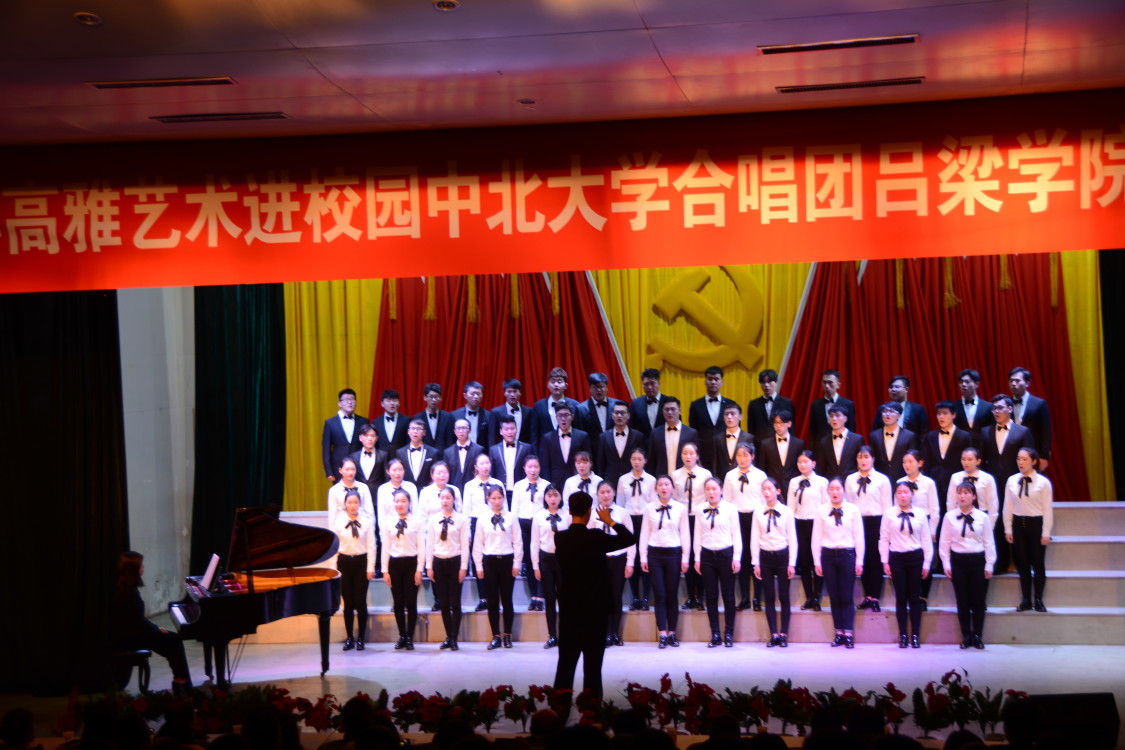 在全国上下学习贯彻党的十九大精神热潮中,11月24日下午6时,一场由山西省教育厅主办,38-365365体育在线投注艺术系、中北大学艺术学院承办的高雅艺术进校园《从草原走来》中北大学合唱团38-365365体育在线投注专场演出在我校音乐厅成功举办。今天下午莅临38-365365体育在线投注并作了党的十九大精神宣讲报告的党的十九大代表、中北大学教授薛晨阳,38-365365体育在线投注院长熊继军,38-365365体育在线投注党委副书记刘自强出席晚会。38-365365体育在线投注师生与中北大学艺术学院领导、来宾一起观看了这场精彩演出。