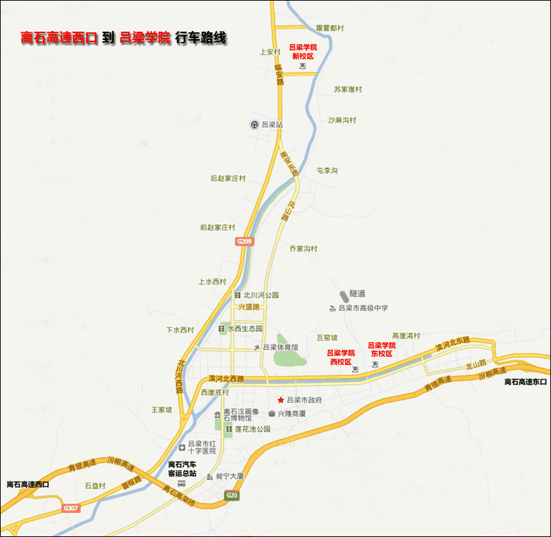 离石高速出口分为离石东口与离石西口,自驾车请按以下示意图驾驶: