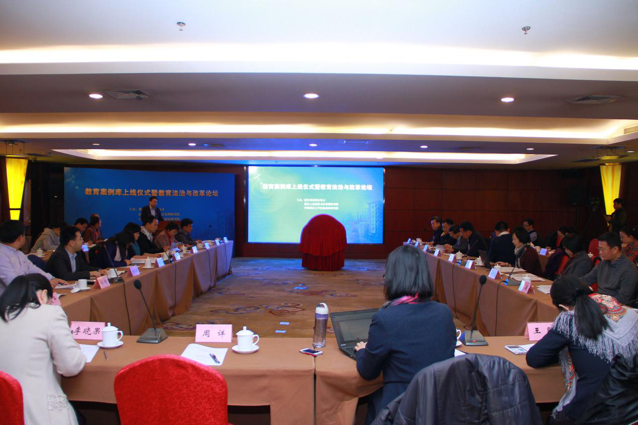 12月6日下午,教育案例库上线仪式暨教育法治与改革论坛在北京召开,此次会议由教育部政策法规司、最高人民法院司法案例研究院、中国政法大学法治政府研究院共同主办。来自最高人民法院司法案例研究院、教育部政策法规司、北京市高级人民法院、北京市教育委员会、北京市第四中级人民法院、北京大学、中国人民大学、中国政法大学、北京外国语大学、北京理工大学、北京大学附属中学、中国人民大学附属中学、北京市东交民巷小学等实务部门、知名高校和科研院所的三十余位专家学者,以及新华社、人民网、中央人民广播电台、《法制日报》等十多家新闻媒体出席了会议。